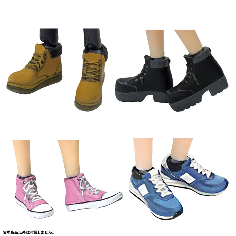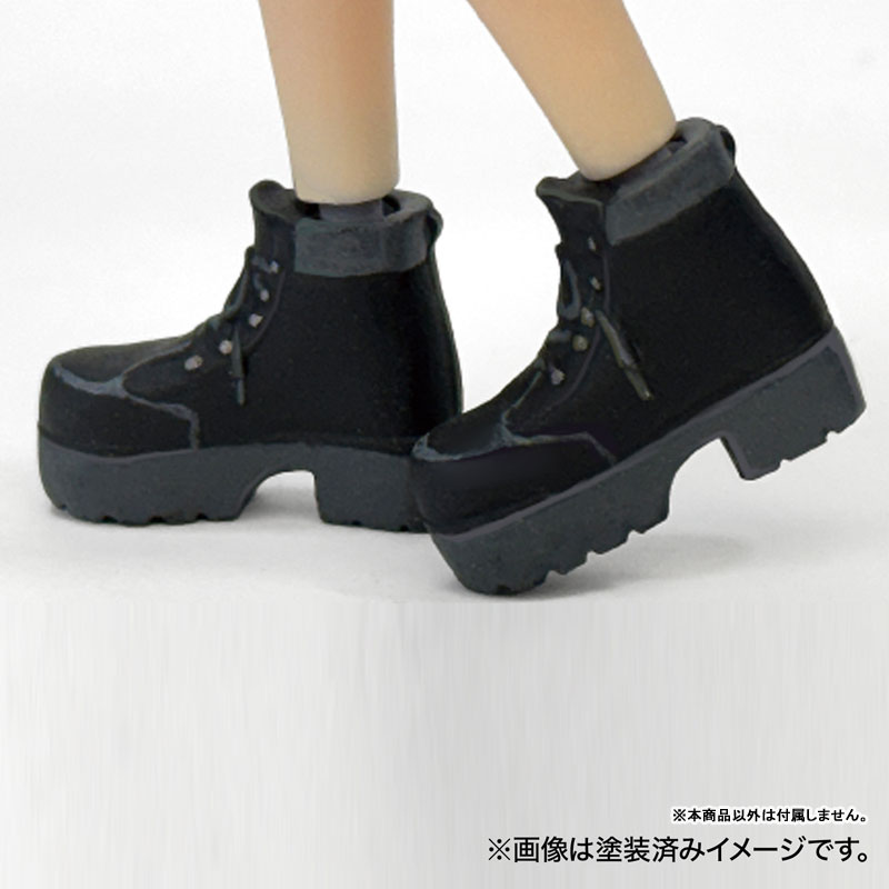 ABS Description Shoe parts for 1/12 scale figures. It is highly versatile and can be interchanged with the same scale figures from various manufacturers by using a joint set sold separately. This is a typical thick-soled boot-like item. The product is unpainted and has runners. You can enjoy painting it in your favorite color.