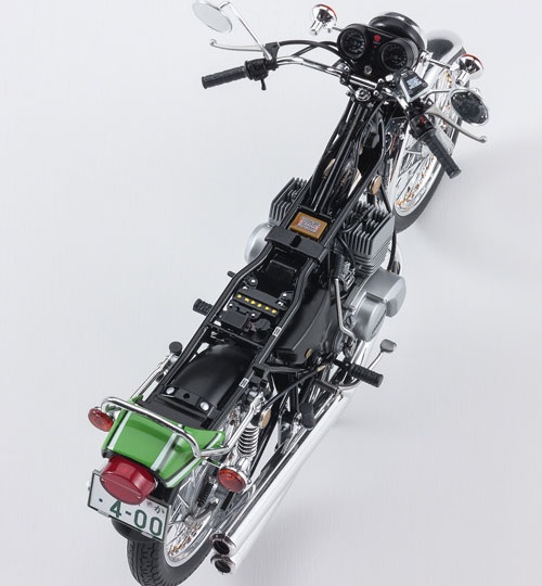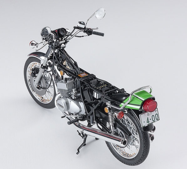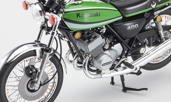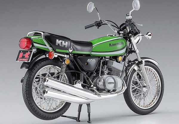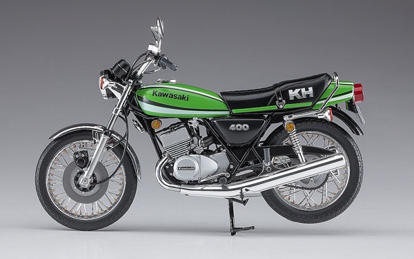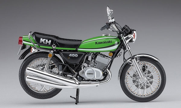 1/12 Description Kawasaki’s legendary car KH400! ! Kawasaki KH is equipped with a unique 2-stroke 3-cylinder engine inherited from the Mach series. Nicknamed “ketch,” it is an on-road bike that is still very popular as of 2018. The final model “KH400-A7” with a displacement of 400cc released in Kawasaki Lime Green racing color in November 1979 will be made into a kit with a completely new mold based on thorough research on actual vehicles. Color-coded parts and plated parts reproduce an image close to the actual vehicle without painting.
