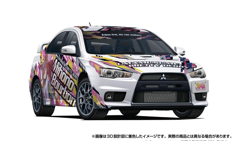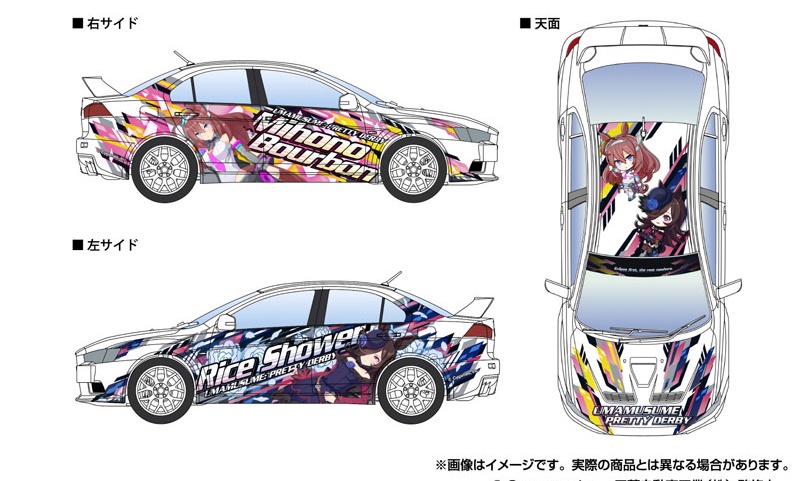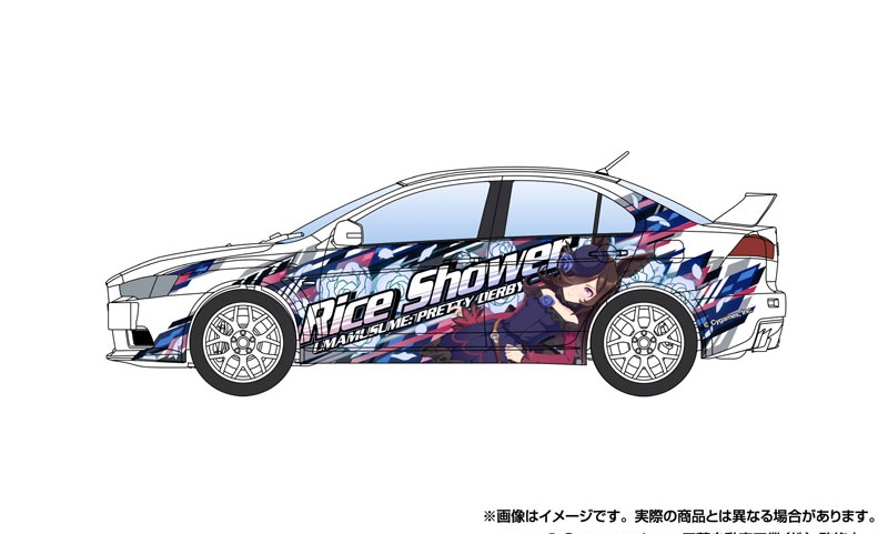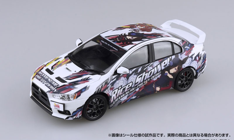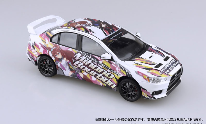 Total length approx. 189mm Commentary The third Itasha is these two from “Uma Musume Pretty Derby”! From the training simulation game “Uma Musume Pretty Derby”, the characters Mihono Bourbon and Rice Shower appear in the third 1/24 Itasha series! ・Aoshima original designed character decals/stickers are included. ・An original designed box sticker is also included as a bonus. ・The base car is CZ4A Lancer Evolution