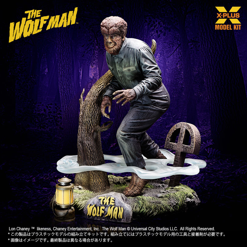 HIPS Description Reproduce the “fog” effect with parts! A werewolf from “The Wolf Man” released in 1941 appears in the Universal Monsters model kit series. We focused on recreating the character’s characteristic proportions and poses, as well as creating the eyes that shine through Lon Chaney Jr.’s acting and the detailed body hair of the beast. The looming “fog”, which was a memorable effect in the movie, has been made into a three-dimensional figure using transparent parts. In addition, lanterns and grave markers are included to further enhance the atmosphere. Please pay attention! â– Model tools and adhesive are required for assembly.