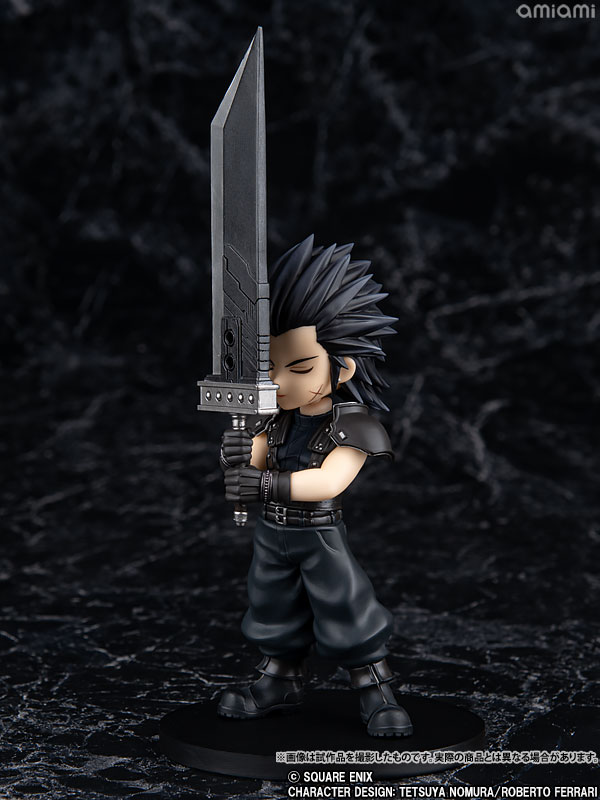 Figure body Buster sword Interchangeable face Interchangeable arm Description Zack’s cool and cute deformed figure from “Final Fantasy VII Rebirth” has appeared. It can be changed to a praying pose with replacement parts.