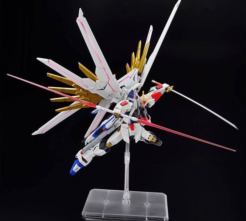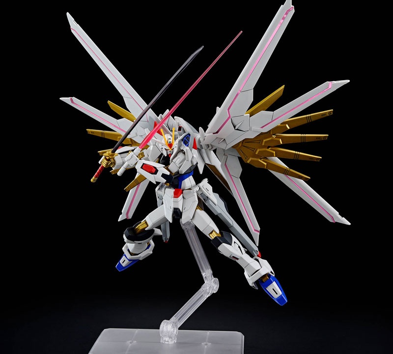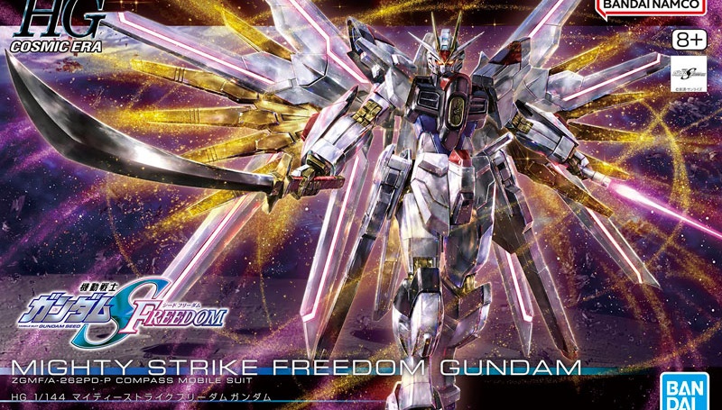 Product specifications Plastic model [Scale] 1/144 Explanation The “Mighty Strike Freedom Gundam” that appears in “Mobile Suit Gundam SEED FREEDOM” is made into a three-dimensional HG! ■Equipped with the internal structure “SEED Action System” that specializes in reproducing impressive action poses from the “Mobile Suit Gundam SEED Series”. ■The connecting shafts of the hip joints of both legs can swing up and down independently, allowing posing with the toes stretched out and aligned. ■The gold part uses real metallic gloss injection, a material that enhances the metallic luster. ■The wing parts are individually movable over a wide range. Furthermore, the…