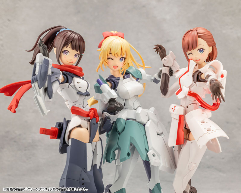 The head has a layered structure, and each can be removed. The visor part has the same structure as the bangs parts of Sosai Girls’ Garden, so they are compatible. The mask parts are compatible with the expression parts of Sosai Girls’ Garden, and by exchanging them, you can enjoy the character wearing a helmet or vice versa. *About compatibility of visor and mask parts. Separately sold Sosai Girl’s Garden “Ao Gennai” and “Kiko Jubuki” are not compatible with Green Grass due to their own specifications. Accessories ・Green glass body x 1 ・Ex Armor E Dress Ver.