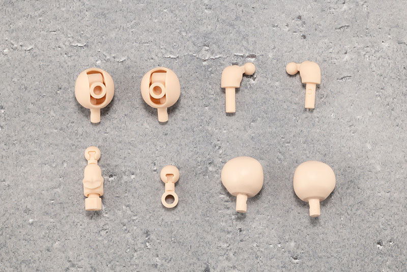 The “neck”, “shoulder” and “hip” parts molded in skin color A are extension parts that can be partially customized to the real body design. The neck is sculpted with clavicle detail and has a design that is highly compatible with the head of Sosai Girls’ Garden (sold separately). Two types of base parts to attach the head are included with different lengths: “A type (for Sosai Girls’ Garden)” and “B type (for Megami Device)”. Two types of neck ball joints are included: φ5mm (compatible with Megalo Maria, Sosai Shojo Teien, Arcanadia, Frame Arms Girl) and φ6mm (compatible with Megami Device). In addition to the front and back sliding structure for the ball joint in the neck, flexible poses are possible using multiple movable gimmicks using the axis movement and ball joint. The shoulder and hip joints are designed without any mechanical details from the exterior. The hip joint parts have a pull-out structure and can be used as living parts with a high range of motion. Two types of hip joint parts are included: “A type (for Megalo Maria female type)” and “B type (for Sosai Girl Garden body)”. *B type has shape restrictions, so all caps areIt does not correspond to the vector.