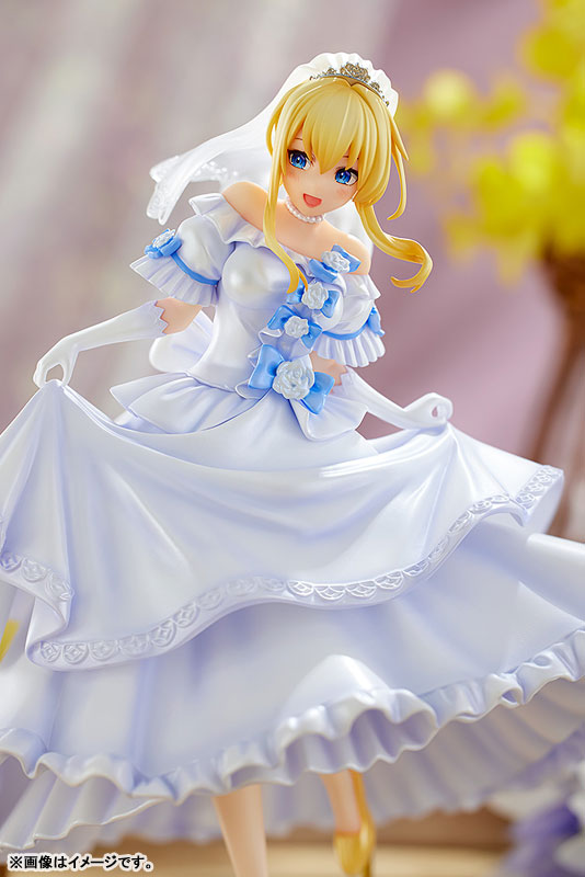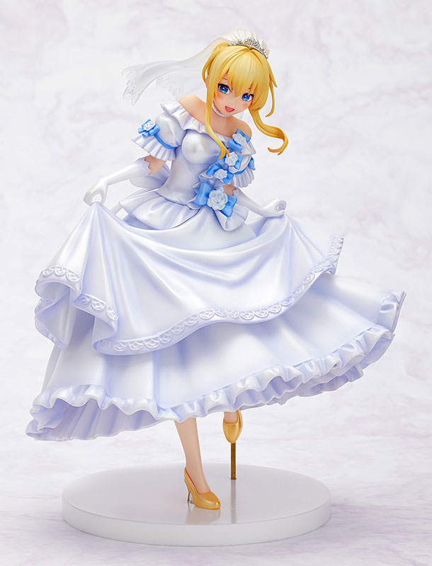 Figure body Dedicated pedestal Explanation Prototype production: Matsuda model (loincloth) Coloring: Matsuda model (loincloth) Planning and production: KDcolle (KADOKAWA Collection) Planning cooperation: Sneaker Bunko Editorial Department Darkness, a new illustration drawn by Kurone Mishima, commemorating the 10th anniversary of the popular work “Kono Subarashii Sekai ni Shukufuku wo!” is now available as a figure! Although it is small scale, it beautifully reproduces the ribbons and rose corsages that decorate the wedding dress, the finely crafted lace patterns, and the delicate tiara and veil! The best features of a 1/7 scale figure, such as her shy smile and the lightness of her feet peeking out from the hem of her dress, have been condensed into a 17cm figure. The scale makes it easy to pick up and display, so you can display it on your desk or bookshelf. We also recommend displaying it together with the paperback version of “Konosuba”! Please enjoy the extremely cute bride’s darkness, which is suitable for celebrating your 10th anniversary.