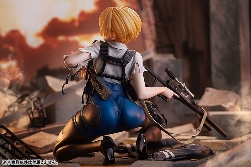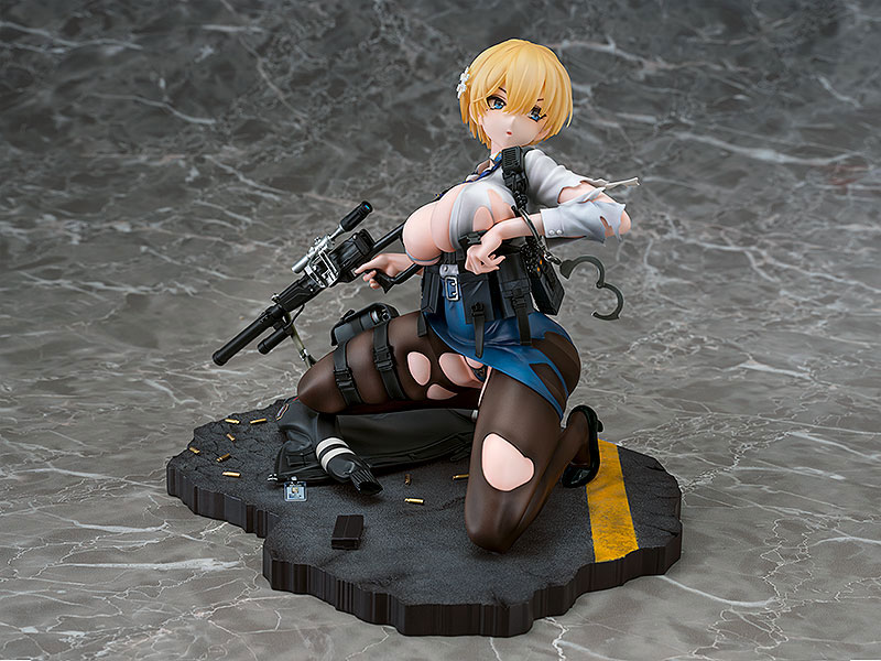 Figure body Exclusive pedestal Description Prototype production: Hermit Crab, Yuyuki Yamaguchi (Phat!) Production cooperation: Phat! , Revolve Coloring: Armpit Mecha Matsu A 1/6 scale figure of the rifle doll “VSK-94” from the popular smartphone game “Dolls Frontline”. He has been sculpted into a three-dimensional figure that shows his unyielding fighting spirit as he continues to fight even after receiving damage. It incorporates plenty of expressions unique to figures, such as the brave facial expressions that can only be seen during battle, and the sensuous expression of exposed skin, while following the motif illustration, and the firearm, which is the symbol of the work, has been recreated down to the last detail. Also, be sure to pay attention to the pedestal, which gives you a better sense of the worldview of the work, with its road surface inspired by urban warfare and rolling bullet casings.