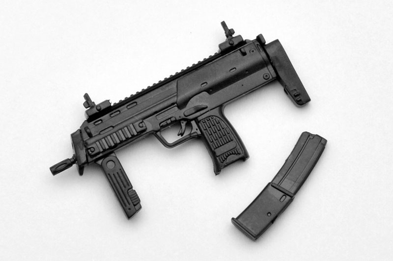 1/12 Description The 4th edition of the 1/12 scale assembly kit “Little Armory” is all new to the series. Handguns, portable anti-tank weapons, and PDWs. In addition to the details that match the real thing, we also paid attention to the composition so that you can enjoy combining it with movable figures. A German-made PDW (Personal Defense Weapon) that uses a 4.6 x 30mm bullet that can penetrate hard targets such as armor but is difficult to penetrate soft targets such as the human body. The kit contains two guns by preparing the main body with the stock expanded and stored. Comes with a dedicated suppressor, T1 type micro dot sight, and AN/PEQ-15 laser sight. *Using adhesive for plastic models is recommended.