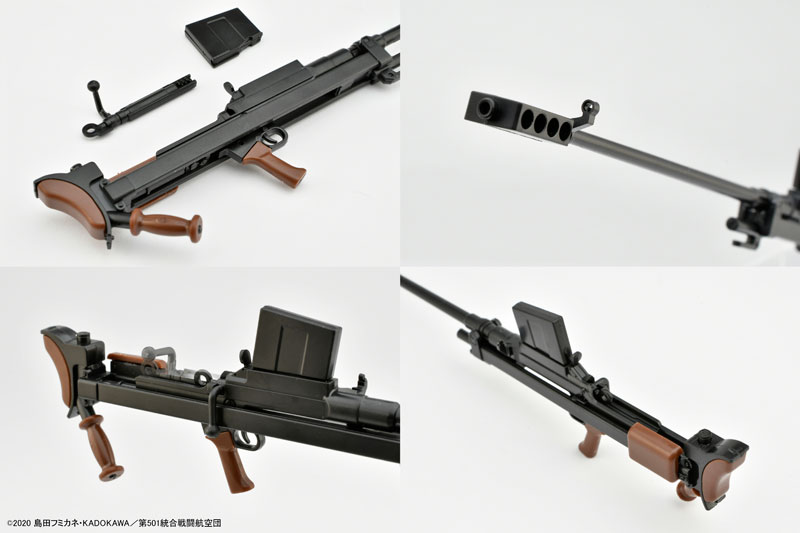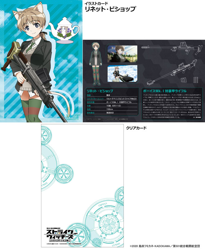 1 illustration card (postcard size), 1 clear card included Commentary Original drawing: Michio Sato Finishing: Yuko Sato Finishing: Tomoaki Makidera Firearm commentary: Takaaki Suzuki From Little Armory, which has a lineup of elaborate miniature firearms, the gun from the TV anime “501st Joint Fighter Wing Strike Witches ROAD to BERLIN” has been made into a plastic model! This product is an assembled 1/12 scale model of the Britannia anti-armor rifle “Boys Mk.1” used by sniper-type Air Force witches such as Lynette Bishop. This work not only reproduces the specifications from the movie, such as the large box-shaped muzzle brake, but also has a movable bolt action. The package and illustration card use original illustrations by Michio Sato. On the back of the illustration card, there is a newly written commentary on firearms written by Takaaki Suzuki, who is responsible for setting the worldview and military history. The illustration card can be used as a display for models by combining it with a clear card with a magic square drawn on it. All have carefully designed designs inspired by the world of “Strike Witches”. *Using adhesive for plastic models is recommended.