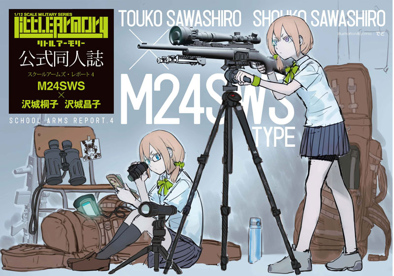 Runner kit Glasses case Booklet Explanation A set of firearms kits, goods, and comic booklets! Recommended for beginners as it also helps you understand the shape of the gun with the themed manga, explanations, and models! This work features a sniper rifle with a long rail and night vision, and a sniper JK pair “Kiriko Sawashiro and Masako”! ■M24SWS (MARS specification) A custom version of the bolt-action sniper rifle “M24SWS” favored by Kiriko Sawashiro. A tandem night vision device is mounted on the long rail. Bolt action operation is also possible. A pair of observation hands and observation glasses for Masako are also included. ■Glasses case for going out An illustration of the Sawashiro sisters by Mr. Dedo is printed on a glasses case. The affordable size makes it convenient for storing and carrying 1/12 scale figures, dolls, and accessories! Of course, it can also be used to store glasses. ■Official doujinshi School Arms Report 4 Includes newly drawn comics and commentary pages featuring a sniper rifle and the Sawashiro sisters. Mr. Dedo is in charge of the comics. *Except for the runner kit, glasses case, and booklet are not included.