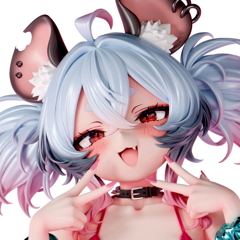 PMMA, PUresin Description Prototype production: mwn A little devil and extremely cute. Yukichi Shiratama, a little girl with mouse ears and twin tails, is now available as a 1/5 scale figure! Her mellow eyebrows, mischievous smile, and canine teeth are irresistibly adorable. The combination of a glossy pink bikini and white knee highs gives her a gal-like feel, but there’s also something innocent about it. And a sparkling piercing in her navel…the magic of the gap packed into her small body. The mouse’s tail waving as if to say, “Look, look!” makes me tickle every time I see it. Please welcome “Yukichi Shiratama” who has a unique presence to your room.