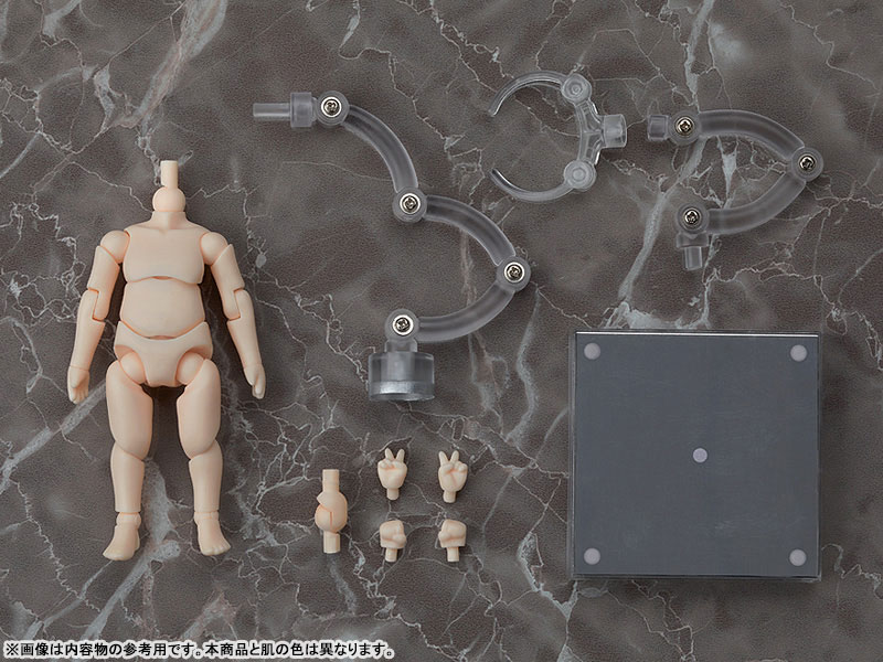 Figure body Exclusive pedestal Description Prototype production: Sawada Kobo Introducing the boy body of the “Nendoroid Doll” series! “Nendoroid Doll” is a palm-sized action figure with a Nendoroid head and a body size that makes it easy to wear cloth clothes, allowing for a wide range of articulation. In addition to enjoying free posing with the magnets on the soles of the feet and the special pedestal, various action poses are also possible using the support that matches the scene. Please use the special long neck joint when changing clothes made of cloth. Heads can be easily exchanged with existing Nendoroids, so enjoy combining them with your existing characters. *Nendoroid head is not included. *Depending on the design of your Nendoroid character, it may not be possible to assemble it correctly. note that. *In archetype 1.1, the included pedestal has been updated to the latest specifications.