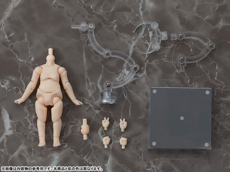Figure body Dedicated pedestal Description Prototype production: Sawada Kobo The girl body of the “Nendoroid Doll” series is back! “Nendoroid Doll” is a palm-sized action figure with a Nendoroid head and a body size that makes it easy to wear cloth clothes, allowing for a wide range of articulation. In addition to enjoying free posing with the magnets on the soles of the feet and the special pedestal, various action poses are also possible using the support that matches the scene. Please use the special long neck joint when changing clothes made of cloth. Heads can be easily exchanged with existing Nendoroids, so enjoy combining them with your existing characters. *Nendoroid head is not included. *Depending on the design of your Nendoroid character, it may not be possible to assemble it correctly. note that. *In archetype 1.1, the included pedestal has been updated to the latest specifications.