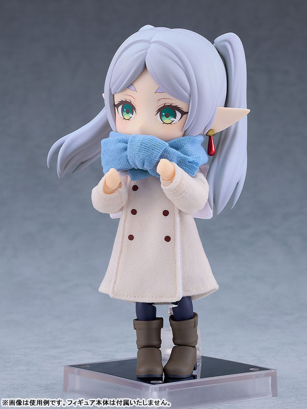 Muffler, coat, dress, shoes (with magnets on the soles of the shoes) *The figure itself is not included. Explanation Prototype production: Pumpkin, SELECT D Production cooperation: Sawada Kobo, Nendoroid Costume/pattern production: GINGER TEA Cherry This is a cloth set for “Nendoroid Doll Freelen”. ●If you wear it for a long time, color transfer may occur on the body. please note. ●Depending on the design of your Nendoroid Doll or Outfit, you may not be able to dress it up correctly. note that.