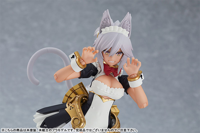 Figure body Dedicated pedestal Explanation Prototype production: Masu Max Factory Production cooperation: Unitech “Maidroid Quon” is now available from the new plastic model series “Guilty Princess” sent by Tony x MAXFACTORY! ・MAXFACTORY is made into a plastic model based on Tony’s design. ・Snap fit model ・Pre-painted expression parts include a grinning face, cool face, and mask face. -In addition, unpainted expression parts and eye decals are included. -As accessories, “Ninja Blade (x2)”, “Kunoichi Blade (x2)”, “Kamablade (x2)”, which can be attached to the “ribbon type shearing unit Otsu-shiki” on the waist, and the whirlwind shuriken “Kamaitachi Zero Type” are included. -In addition, a broom-shaped weapon “Bloom Striker”, Kuon’s exclusive grass mowing attachment “Kusakarimaru” and “Kunai (x2)” are included. – Various hand parts are made of highly versatile PVC. – Comes with a dedicated stand with a movable support that enables various scenes.