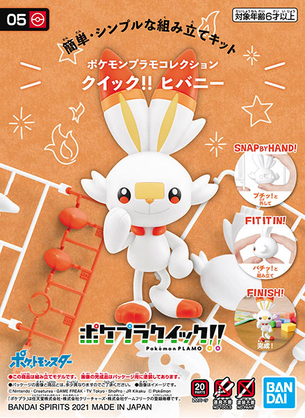 Product Specifications Plastic Model Explanation Easy and simple assembly! “PokePla Quick!” is perfect for your first plastic model experience! ! ” Hibani appears! ■Hibani with a total length of about 116mm made of 20 parts. Pursuing the quality of modeling that can be achieved by using fixed poses. ■Easy to assemble and colorful finish with careful parts division. ■Simple specifications that make you think of the finished product the moment you see the runner. ■Touch gate method that does not require any tools. ■Minimize the number of areas where stickers are used.