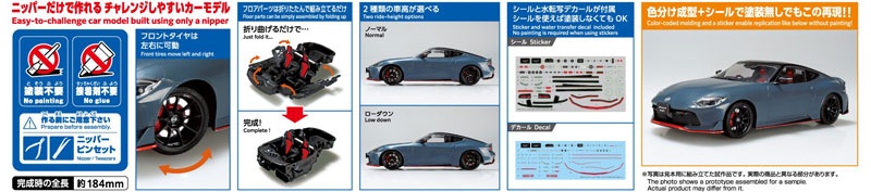 Total length: Approx. 184mm Explanation Rakupla Snap Car 6th edition For everyone who wants to take on the challenge of car modeling The “NISMO specification” from Fairlady Z is now available!