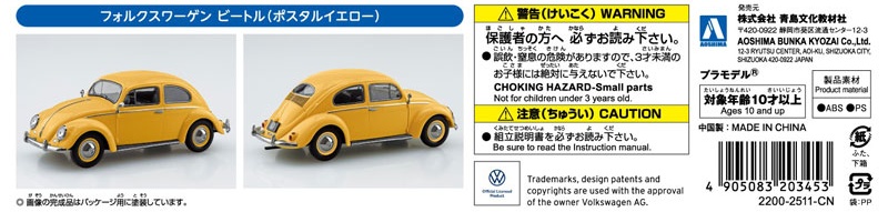 Rakupla Snap Kit No.20-PY Volkswagen Beetle (Postal Yellow) Plastic Model [Aoshima]