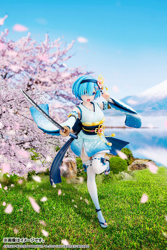 Figure body Dedicated pedestal Explanation Prototype production: SEIKI Coloring: Kimura Production cooperation: En craft Planning and production: KDcolle (KADOKAWA Collection) From “Re: Life in a Different World from Zero”, Rem appears in an original Japanese costume! The pose with the sword held and the dynamic costume are impressive from any angle. The costume fabric has a delicate pentagonal pattern, and the addition of bright gradation and pearl coating creates a gorgeous and elegant finish. Please enjoy the dignified Rem who looks at you seriously. *The product does not stand on its own. Please use the included pedestal.