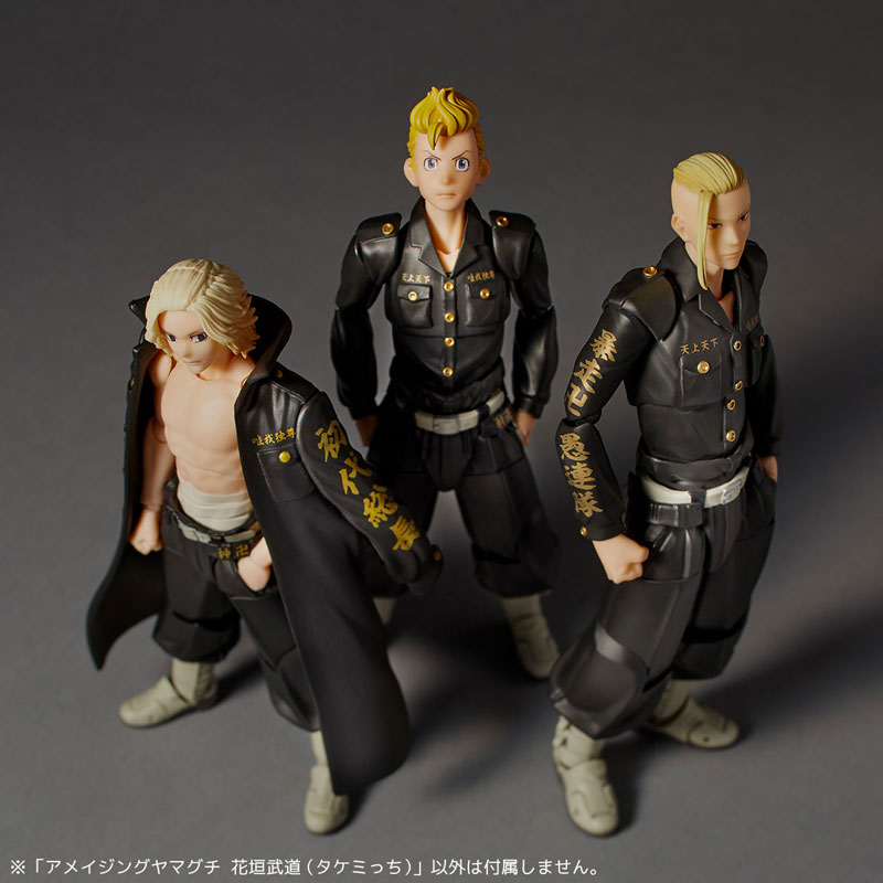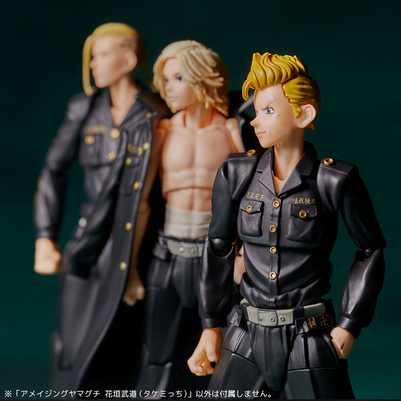 Figure body Optional face parts x 3 types Optional hand parts x 3 sets Display stand Commentary General modeling director: Yamaguchi Katsuhisa Prototype production: Yoshi From the popular TV anime “Tokyo Revengers”, the main character, Takedo Hanagaki, who time-leaped from his part-time job life to 12 years ago when he was a junior high school student, is finally appearing in Amazing Yamaguchi! The one he is wearing is the special attack uniform he received from Mikey after the August 3rd War when the Tokyo Mankai was founded. In addition to the gold letters of “First Tokyo Mankai” on the back, “Bousou Mangu Regiment” and “Manji Bandai Captain”, who was appointed after “Bloody Halloween”, are sewn on the sleeves! Takemichi, who is usually a clumsy character, has a slightly hunched back, lackluster physique, and lacks any distinctive features, giving him an unusual appearance for an action figure. Of course, with the highly expressive movable gimmick created by Katsuhisa Yamaguchi, you can perform a wide range of performances such as the perseverance and hard fighting that you show at critical moments! The lineup also includes interchangeable facial expression parts, allowing you to see his always frantic efforts. Takemichi repeatedly time-leaps while being at the mercy of the invisible flow of fate, and struggles to change the worst future in order to protect the people he cares about. Please recreate the appearance of him standing alongside Mikey (sold separately) and Draken (sold separately) as a member of the Tokyo Mankai with Amazing Yamaguchi. *Highlights ●A total of 4 types of expression parts are included, including a normal surprised face, a scared face dripping with sweat, a glaring face looking upwards to face a stronger opponent, and an angry face covered in bandages and wounds. In addition, the scars on the left hand are also printed on wrist parts such as the open palm, clenched fist, and grasping hand. Also, you can pose with your hands in your pockets using the special wrists. -The range of motion of the torso in the special attack uniform is adjusted so that it bends deeply, creating a finish that determines the pose of being defeated or standing up while enduring the pain. You can enjoy the character expression unique to “Crybaby Hero” with poses and expressions. ●The body has a scent inspired by Takemichi. Even though he has weak arms and a clumsy personality, he stands up to adversity with a sense of justice and guts, and the scent of this man makes our products appealing.Get your hands on it and check it out! If an obi is included in the package, the obi is outside the scope of the product specifications. Damage to only the obi will not be eligible for replacement. Please be aware of this before purchasing.