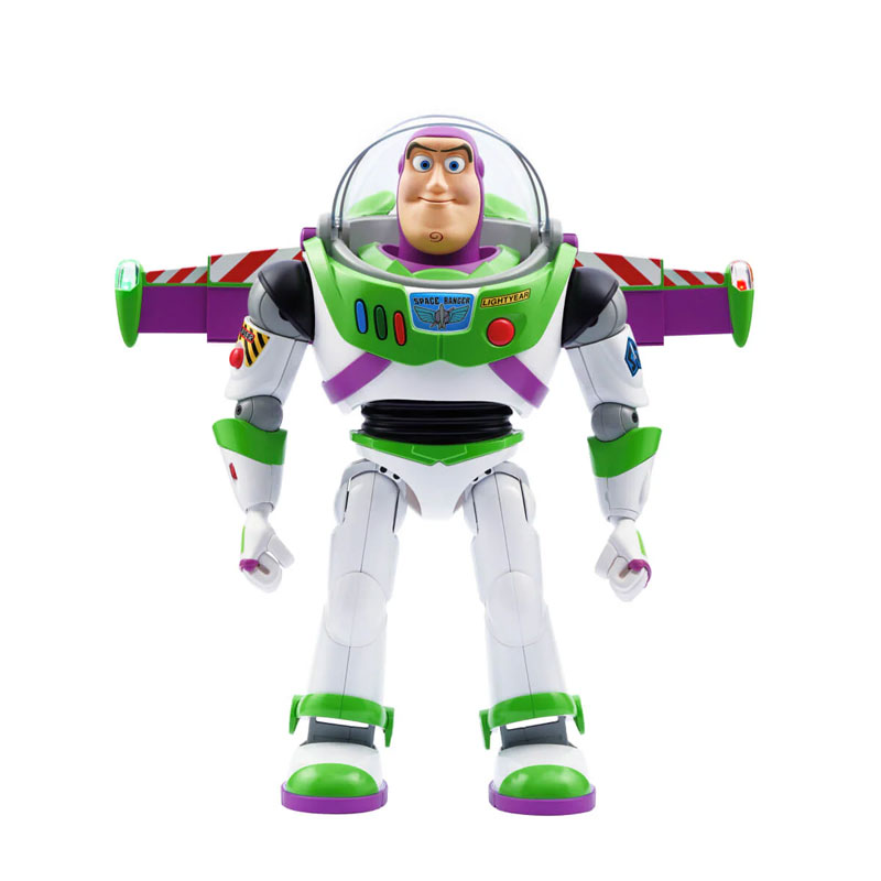 ABS resin, aluminum alloy, silica gel Description Buzz Lightyear from “Toy Story” appears as the long-awaited robot! The English audio version of Buzz Lightyear, which allows him to “walk, move, talk, and create,” allows you to enjoy immersive action and sound! Equipped with 23 high-precision servo motors, over 75 microchips, and over 3000 parts, it achieves natural walking and various actions. ・Voice command operation *34 voice commands ・App control ・Radio control-like operation ・Various actions (bipedal walking, etc.) ・Movable eyes and mouth ・Deployable and retractable jet pack wings ・Programming ・Voice dialogue ・Mini theater *Voice will be in English.