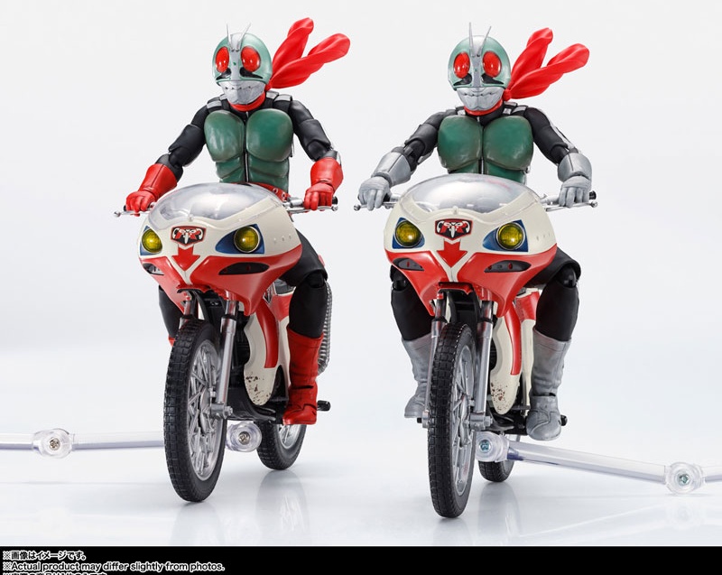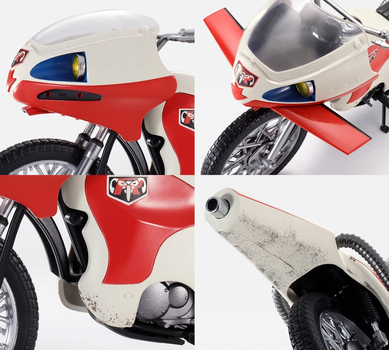 Figure body Cowl wing parts left and right Rear wheel stand Replacement wrist parts left and right for “S.H.Figuarts Kamen Rider New No. 1 Glorious Showa Rider Edition” Replacement wrist parts left and right for “S.H.Figuarts (Shinkocho Seiho) Kamen Rider New No. 2 Glorious Showa Rider Edition” Replacement muffler parts for “S.H.Figuarts Kamen Rider New No. 1 Glorious Showa Rider Edition” & “S.H.Figuarts Kamen Rider New No. 2 Glorious Showa Rider Edition” Explanation “Run, Ryusei Machine!” The “New Cyclone” that fought together as a dedicated machine for Double Riders will return to S.H.Figuarts as a glorious Showa Rider Edition!