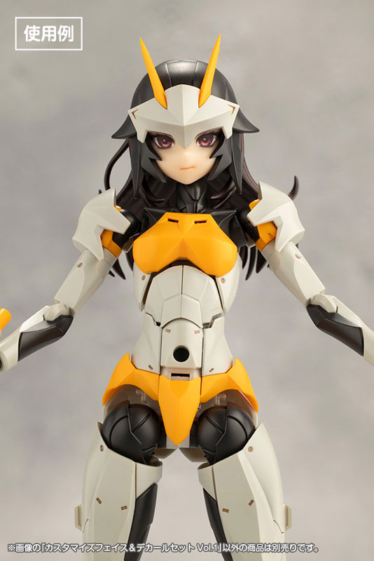 1/10 Description Facial expression parts design: Yunosuke Maruya, Takenari New facial decal design: YUKI (KOTOBUKIYA) Introducing a set of unpainted facial parts and newly designed facial decals for customization that correspond to Sosai Girls’ Garden and Megalo Maria. The Sosai Girls’ Garden facial parts and Megalo Maria’s mask are compatible, so they can be used as original face parts for the two series. In addition to the four types of facial expression decals, there are two for each expression: “front facing”, “right facing”, and “left facing”. The design theme of Vol.1, the first series, is “an intense expression suitable for battle-type customization.” *Facial expression parts are not compatible with Sosai Girls’ Garden “Ao Gennai” and “Kiko Tobuki” Megalomaria male version. Product Specifications There are 4 types of facial expression parts that come with Vol. 1 that come with “Ritsuka Saeki
