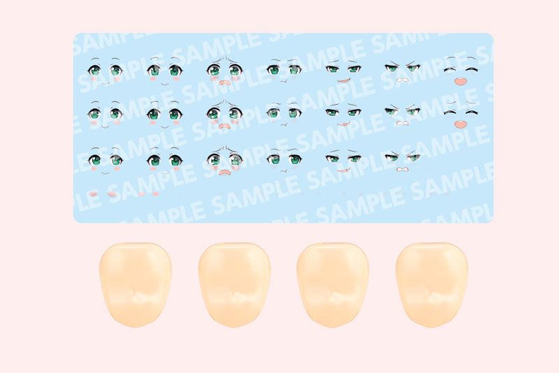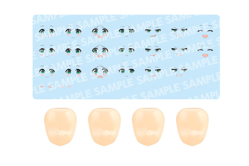 1/10 Explanation Facial Parts Design: Yunosuke Maruya Customized Face & Decal Set Vol.4 is a set of newly shaped custom unpainted facial parts and newly designed facial decals. It has a new design by En Morikura, who is well-known for the character design of the Sosai Girls’ Garden series, and the design concept is “childishness”. The included “unpainted facial expression part A” does not have the eyes and mouth of the existing characters, and has a slightly younger face line. By eliminating the mouth shape, various customizations are possible using deformed facial decals. Each runner comes with 4 facial expression parts of the same shape, so please attach your favorite facial decals to create your own original facial expression parts. In addition, a cheek line decal that is difficult to draw by hand is also included, so it can be used on unpainted expression parts of existing characters. Accessories 1) Custom unpainted expression parts A type x 4 2) Water transfer expression decal x 1