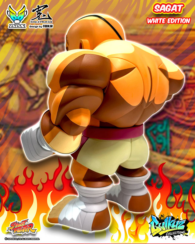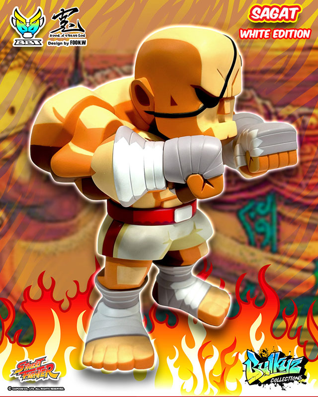 Soft vinyl Explanation DESIGNER: FOON.W 3D SCULPTOR: ORANGE PE Three-dimensional version of “Sagat” from the CAPCOM fighting game “STREET FIGHTER”! Introducing a painted finished product (White version) with huge movable “two-dimensional coloring”.