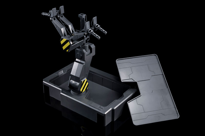 Pedestal body Pedestal auxiliary parts Main pillar/post parts Post replacement attachment Departure ship hook arm Instruction manual Explanation Planning cooperation/design: Hiroyuki Motoki (T-REX) A movable display stand that can display Arcadia’s 1/60 scale Macross products. It is mainly a product that can be attached to the Macross Complete Transformation Series (variable fighter), and features an appearance that incorporates the world view of Macross. Auxiliary legs are included for the pedestal to prevent it from tipping over due to large models or display angles. The angle of the main pillar can be adjusted forward, backward, left and right, and the base of the main pillar and the base of the pillar (tip part) can be rotated left and right. If you remove the top plate of the pedestal, there is a space for storing small items. The hook arm that appeared in the movie is also included.