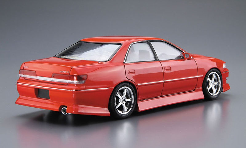 1/24 Explanation Fully aero JZX100 Mark II The X100 series, the eighth generation Mark II, was released in September 1996 as a full model change from the previous X90 series. It uses a new GOA body with cutting-edge collision safety measures, and comes standard with ABS and SRS airbag systems for the front seats. The elegant body, which has returned to its straight lines, remains highly popular even today. BN sports full aero specification ●Front bumper ●Side step ●Rear bumper ●Aero mirror ●Eyeline garnish ●Muffler ●18 inch Gram Lights 57F wheel ●Graphic decal ●Window frame sticker included