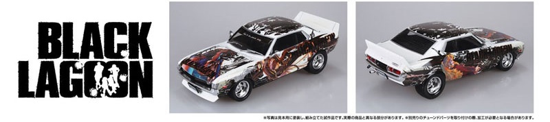 Total length approx. 174mm Description “BLACK LAGOON”, a stylish and hard-boiled gun action manga that began serialization in 2002, is now available in The Tuned Car series! ・Aoshima original designed character decals/stickers are included *Both decals and stickers are included ・3 original design stickers (50mm x 50mm) are also included as a bonus ・Base car is TA22 Celica 1600GT hot rod specification *Body molding color is white *Tools such as plastic model adhesive are required for assembly.