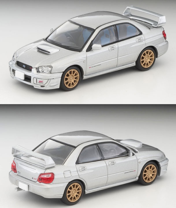 1/64 Description The second generation Subaru Impreza was born in 2000. The most powerful model, the WRX STi, was designed to compete in the WRC (World Rally Championship), and continued to be available from the first generation.In 2002, the exterior underwent a minor change and the exterior was drastically changed, evolving into the Applied C, commonly known as the “Tearful Eye”. The WRX STi produced by Subaru Technica International (STi) uses an exhaust manifold with equal length. In 2005, a minor change was made to arrive at the Applied F, commonly known as “Takame”, and it was a long-lived model that was sold until a full model change in 2007. A new specification is now available for the second generation Impreza of TLV-NEO, which has been well received. In addition to the body color being silver, the top grade WRX STi is equipped with optional forged 17-inch aluminum wheels. Please enjoy together with various items sold separately. ●Here are the highlights● ・New specifications have been released for the 2nd generation Impreza ・Reproduce the details of the so-called “tearful eyes” ・Adopt optional wheels