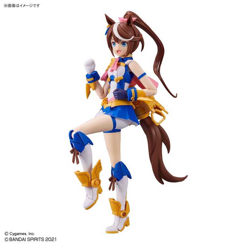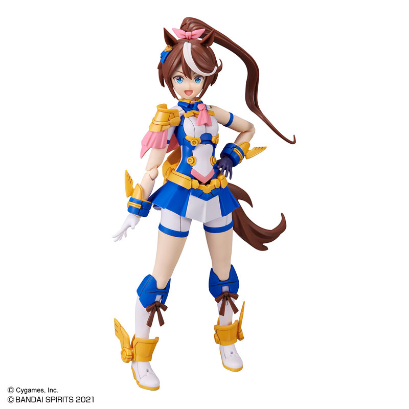 Product Specifications Plastic Model Explanation “Uma Musume Pretty Derby” Tokai Teio starts running in the 30 MINUTES SISTERS series! ! ■Using the design technology cultivated with 30 MINUTES SISTERS, a supple body line is expressed. The skirt part uses a sheet-like material that allows the legs to move. ■Three types of expression parts are included in printed form. You can choose according to the situation. ■The relationship between design and division of the original costume was carefully verified. It is a model that can be reproduced colorfully simply by assembling the parts with color coding and shape taken into consideration. ■The design of the sole is reproduced by dividing it into parts. ■The head has movable ears and color-coded earrings that are divided into parts. ■A total of 10 types of hand parts with different colors on the left and right are included. ■The clear molded display base and new joint parts that secure the ankles allow you to create a display that shows off your running silhouette.