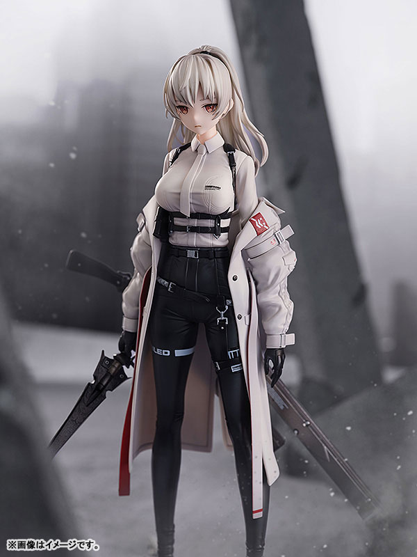 of the “A-Z:” series by illustrator neco is now three-dimensional! Her monochrome outfit with detailed metal fittings and belts, as well as her precisely crafted jet black weapons, have been faithfully recreated. It is a very attractive item with its delicate and beautiful appearance and cute and strong-willed eyes. Please be sure to have this masterpiece sculpted with various textures in your hands.