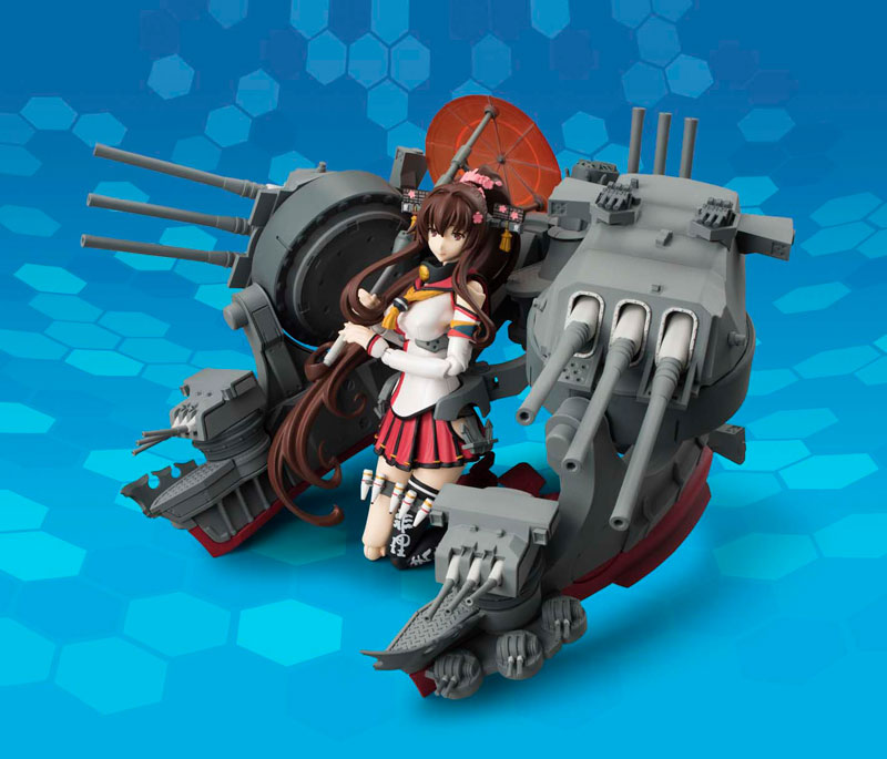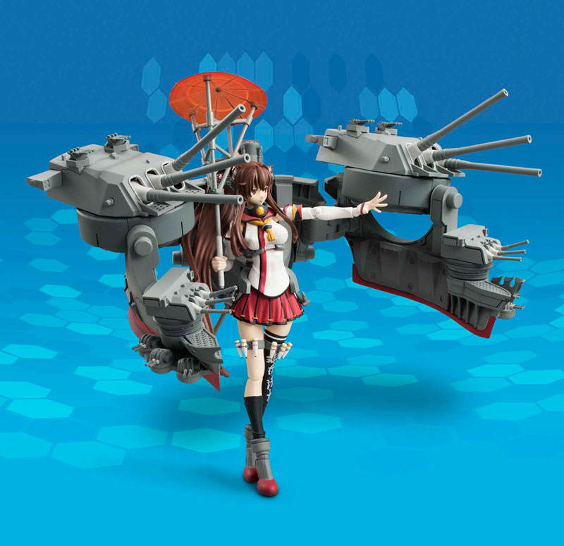 Kanmusume main body Outfitting main body Umbrella 3 types of replacement facial parts 5 types each for left and right replacement wrists Outfitting joint Exclusive set of pedestals Description ■ Yamato-class battleship Ichiban Yamato, anti-aircraft firearms have been significantly strengthened. ■There are 4 types of expression parts in total. Three of them are new parts that have been completely renewed from “AGP Yamato”. (Open-mouth smile, closed-mouth smile, front smile) ■Some new parts have been added to the outfitting parts, increasing the volume. You can enjoy the world view even more by aligning it with “AGP Musashi Kai” scheduled to be released in June 2015.