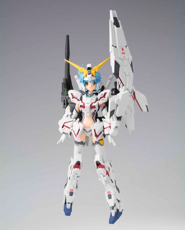 Main body Replacement facial parts Replacement head (unicorn mode) Replacement wrists 3 types each on left and right Replacement armor set (unicorn mode) Beam Magnum Beam saber x 2 Armed Armor DE Hyper Beam Javelin Commentary