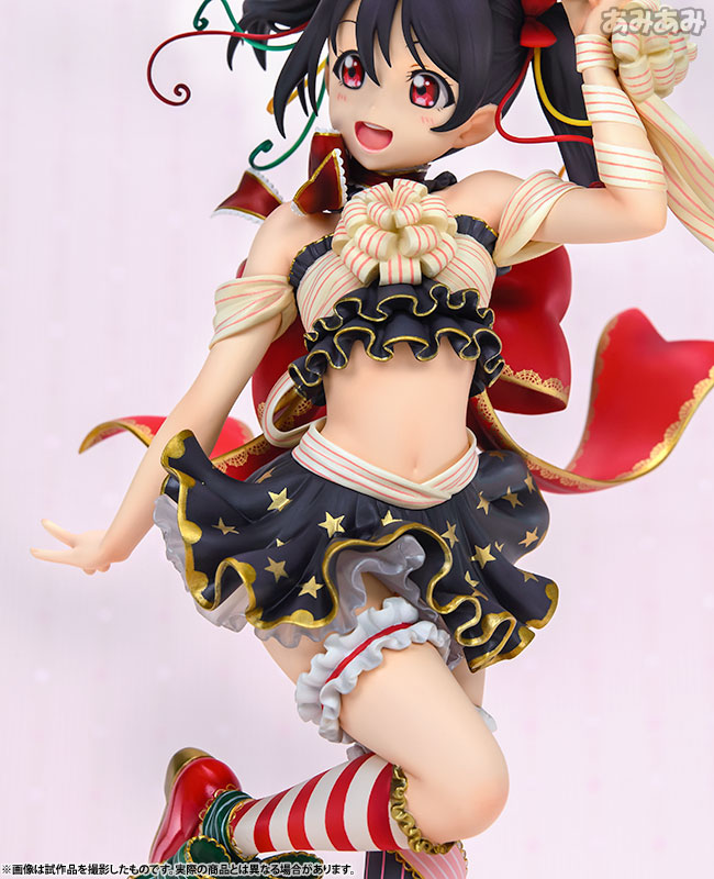 Figure body Dedicated base Explanation Prototype: Takaku & Takeshi Coloring: Ichiro Ayabe “Love Live! From “School Idol Festival” comes “Nico Yazawa”! She works hard day and night to become an idol, and the game’s card “What’s your present?” ‘ costume has been made into a three-dimensional figure. Her energetic smile and dynamic pose make her a perfect idol-like figure. Ribbons of various sizes and a costume full of frills bring out her cute charm. The colorful Christmas colors and metallic colors applied to key areas create a gorgeous finish. It is also possible to reproduce the figure with the hat removed and the pose of the left hand changed. Please enjoy it according to your preference.