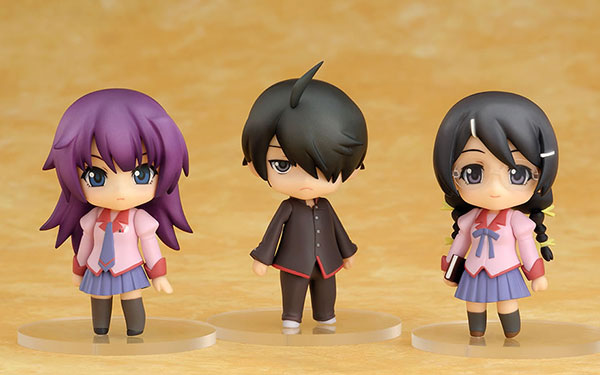 Koyomi Araragi Hitagi Senjogahara Tsubasa Hanekawa – Ahoge Stapler Cat ears & tail Exclusive pedestal Explanation Prototype production: Hitoshi Taira Production cooperation: Nendoron From the popular TV anime “Bakemonogatari”, the classmate trio “Kyomi Araragi”, “Hitagi Senjougahara”, and “Tsubasa Hanekawa” are now available as a set of 3 Nendoroid Petits. We have also prepared a variety of replacement parts that symbolize each character, such as the familiar “Ahoge”, “Stapler”, and “Cat ears & tail” from the series! Enjoy recreating various famous scenes in a relaxed and cute way!