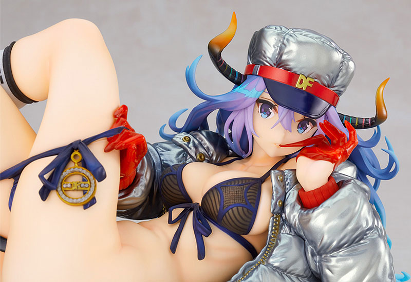 Figure body Dedicated pedestal Explanation Prototype production: Akimofu Coloring: Nakano Figure Classroom (Fukui) Introducing the second installment of the “DF” series of devil girls and fashion-themed series drawn by popular illustrator Saitom. The area of the skin-colored area is increased compared to the first model “Stella”. The softness of the body was emphasized. In addition, the texture of the metallic down jacket is recreated through coloring and engraving. The sneakers that incorporate clear parts at key points are also a highlight. Please welcome “Lufia”, which is an exquisite fusion of eroticism and pop.