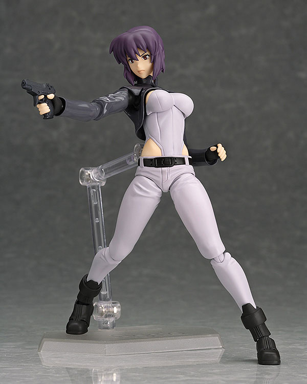 Main body Dedicated pedestal Expression parts (normal face, screaming face, smiling face) Sebro A Sebro C26A Description Prototype production Naoya Takahashi (Max Factory) Production cooperation Maki Asai TV anime “Ghost in the Shell STAND ALONE” COMPLEX”, the main character “Motoko Kusanagi” is now available as a figma! -Reproduce every scene from the movie with figma original joint parts that are smooth and precise. ・In addition to a “normal face”, she comes with a “screaming face” and a “smiling face”. ・Includes Motoko’s favorite “Sebro A5” and “Sebro C26A”. Action scenes can be reproduced. ・Using soft materials at key points maintains proportions and ensures range of motion. -A figma-specific pedestal with a movable support that enables various scenes is included.