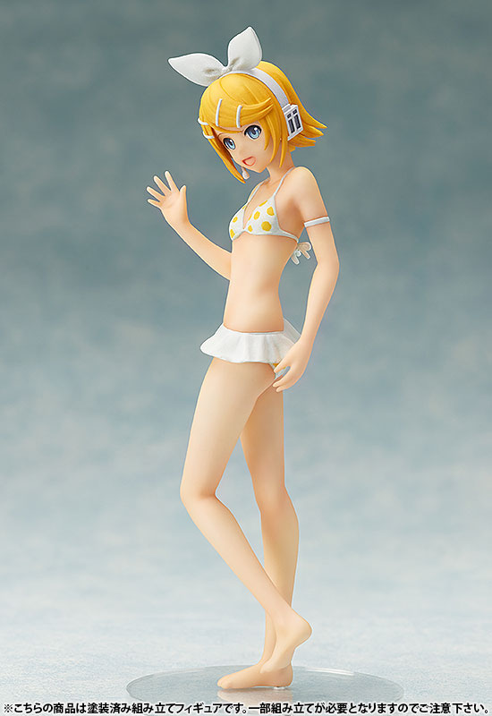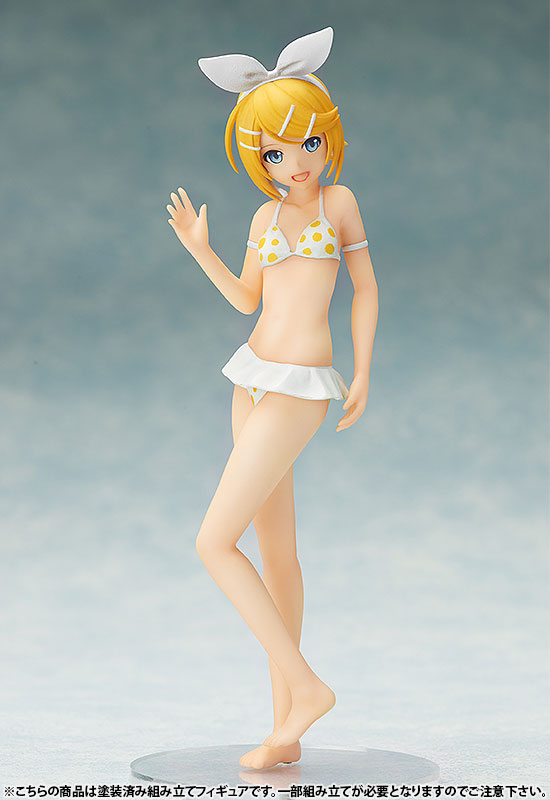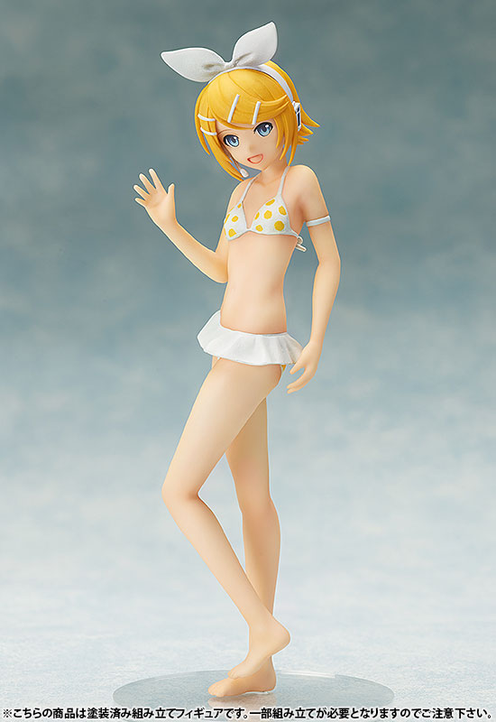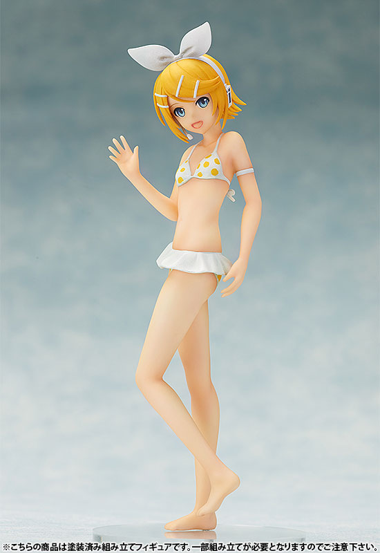 Main body Dedicated pedestal Description Following “Hatsune Miku” and “Megurine Luka”, “Kagamine Rin” is now available in a cute size S-style. The distinctive ribbon and yellow polka dots are so cute! If you combine it with the “Kagamine Len Swimsuit Ver.” (sold separately) that will be introduced at the same time, you can recreate a pose that suits the two of them. Furthermore, if you collect the separately sold “Hatsune Miku Swimsuit Ver.” and “Megurine Luka Swimsuit Ver.”, you will have four virtual singers.