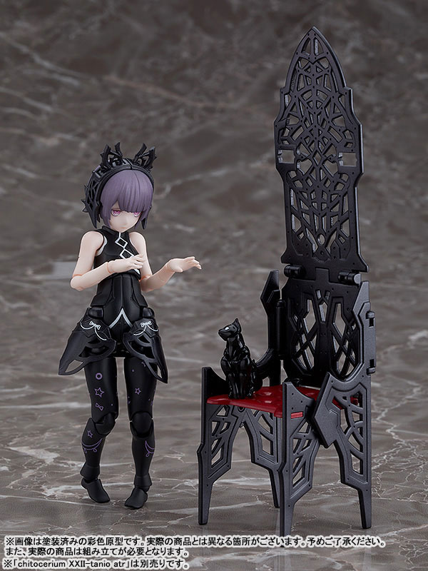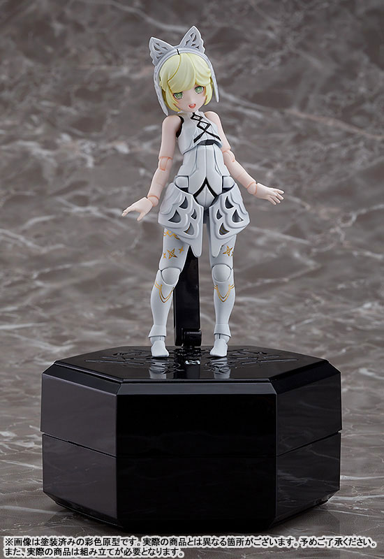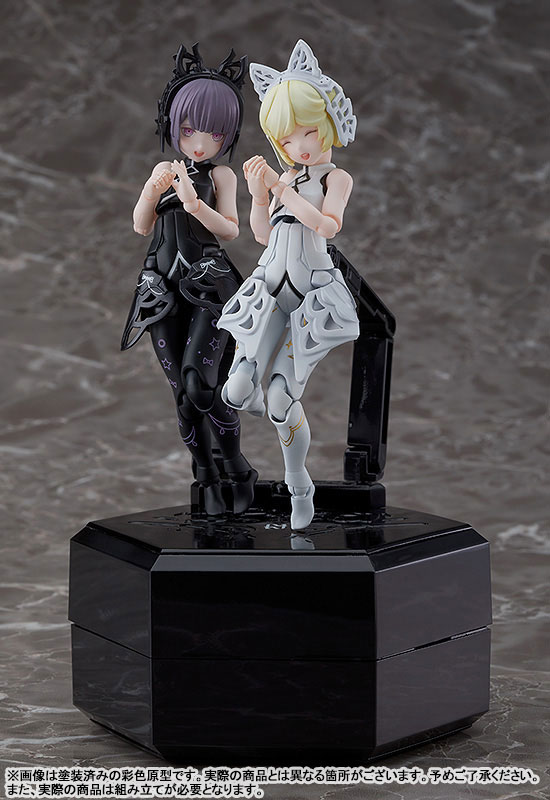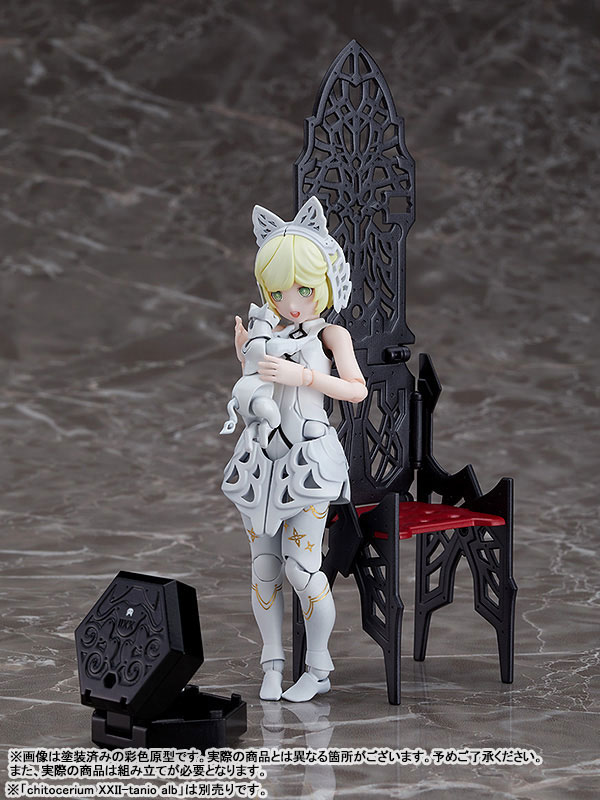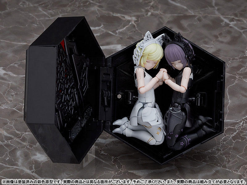 PS & ABS Description Prototype production: Masaki Apsy Production cooperation: Good Smile Company Design: huke Maki Asai x huke x GOOD SMILE COMPANY’s new plastic model series “chitocerium”, 4th volume “XCIX-albere (Albera) & C-efer” is now available. – Gimmick/Accessories – Maki Asai is in charge of the body design, and Huke is in charge of the design work. – The specially designed body achieves an unprecedented range of motion. – Two main bodies called “fragments” and accessories are completely stored in a hexagonal box. -Replacement facial parts include a normal face, a smiling face, and a closed-eyes face. ・Other than the marking parts, the parts are molded in different colors and some parts are painted. -Markings are reproduced with decals.