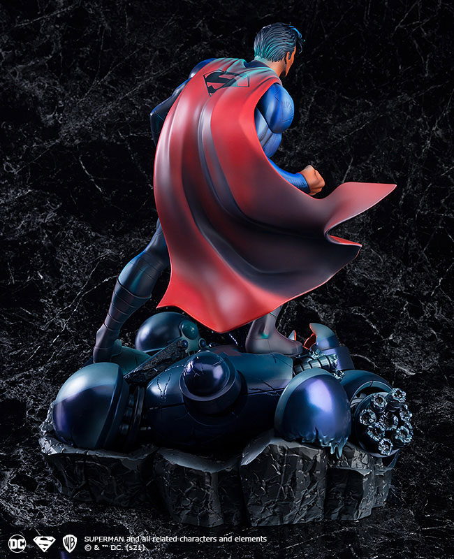 Figure body Dedicated pedestal Explanation Prototype production: Amon Coloring: Kenji Ando From DC’s timeless masterpiece “Superman”, a three-dimensional figure based on an illustration drawn by the official illustrator. The pedestal, which is modeled after a large robot, is finished in a vignette style to show it has been destroyed, and on top of it stands an eye-catching Superman with an eye-catching sculpted body. In addition to the detailed comic-style painting on the main body, the silhouette is made to look like it is created by war fires, creating a statue that is worth seeing in both bright and dark places. Please enjoy it at hand.