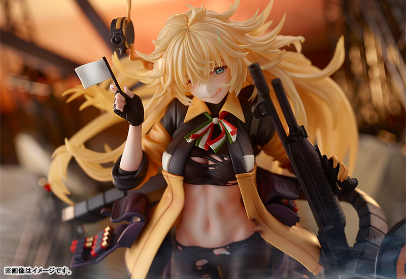 Figure body Dedicated pedestal Explanation Prototype production: RICO (Wonderful Works) / Yuyuki Yamaguchi (Phat!) Coloring: Armpit Mecha no Matsu Production cooperation: Phat! The shotgun doll “S.A.T.8” from the popular smartphone game “Dolls Frontline” has been made into a 1/7 scale figure. It has been made into a three-dimensional figure based on its appearance when it has sustained significant damage. This item is a well-balanced collection of seemingly contradictory elements, such as the adorable expression that shows off the white flag while trying to deceive it with its tongue, the soft skin peeking through the gaps in the torn clothes that have been damaged, and the hardness of parts such as the heavily crafted firearms, shield parts, and pedestal! Also, her characteristic voluminous hair has been faithfully reproduced. Please welcome S.A.T.8, who is always cheerful even during battle!