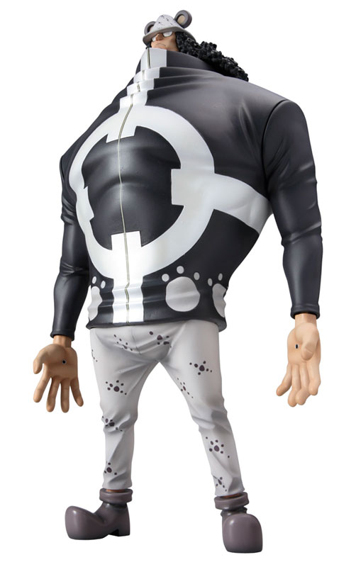 Height approx. 330mm (non-scale) Description Bartholomew Kuma, the “tyrant” of the Seven Warlords of the Sea, will finally appear in the impressive P.O.P-DX series. Its large body with a strong presence has been made into three-dimensional form as imagined with the largest volume in the series. Also, by replacing the face and hand parts, you can recreate the paw pads made from the Nikunicyu fruit and the mass-produced PX-1, making this a long-awaited product.