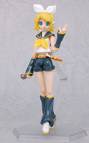 Figure body Dedicated pedestal 2 types of face parts Wrist parts Dedicated microphone Description Following the popular character vocal series “Hatsune Miku”, “Kagamine Rin and Len” are also now figma! – Newly designed joint parts allow for smooth and precise movement, making it suitable for all kinds of situations. -We paid particular attention to the expression and coloring of details such as the charm point ribbon. -Two types of face parts and a wide variety of wrist parts allow for a variety of poses. -A special microphone is included to recreate the figure that sings powerfully despite its small stature. -In combination with “figma Kagamine Len” released at the same time, a twin vocal stage is also recreated. -A figma-specific pedestal with a movable support that enables various scenes is included.