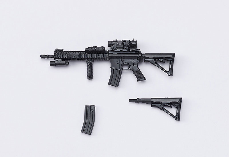 Figure body Dedicated pedestal Little Armory “M4A1SOPMODBLOCK2 type” runner kit (manufactured by PS) Explanation Prototype production: Dragon Craft Production cooperation: Max Factory From Tomytec’s 1/12 scale firearms model “Little Armory”, the summer uniform style of the main character “Miyo Asato” is now a figma! ・Reproduce every scene from the movie with figma original joint parts that are smooth and precise. ・Using soft materials at key points maintains proportions and ensures range of motion. -Using pull-out joints on the shoulders to make it easier to hold the firearms of the “Little Armory” series. Furthermore, in this work, we have created hand parts with a two-hand hold shape for handguns. ・A runner kit for SOPMOD BLOCK2, an advanced version of the M4 carbine, is included. Options such as a variable magnification scope, IR sight, and weapon light can be selected. This is a limited model that comes with a figma that has a different coloring than those sold in the “Little Armory” series. – There are 3 types of facial expressions: a “normal face”, a “battle face”, and a newly created “smiling face”. – Comes with a “handgun” and “magazine” that can be stored in a pouch or holster. The waistband cardigan that also serves as a belt kit can be removed from the figure. A knife and its handle are also included. ・A target for target practice is printed on the background paper of the product package. -A figma-specific pedestal with a movable support that enables various scenes is included.