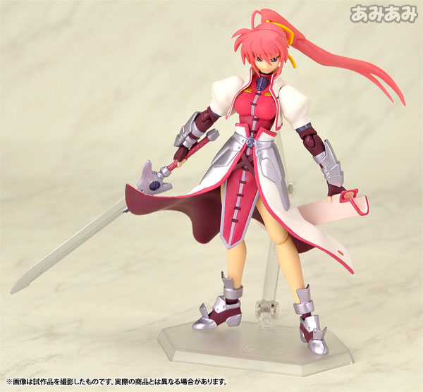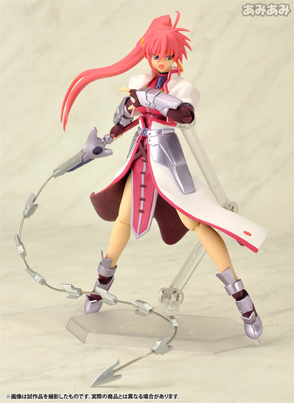 Product specifications ABS & PVC painted movable figure [Size] Total height approx. 145mm (non-scale) [List of set contents] Figure body Dedicated pedestal Levantein (Schubert form) Levantein (Schlange form) Levantein (Bogen form) 2 types of expression parts Replacement wrist Arrow sheath Explanation First release: July 2009 TBD Prototype production: Max Factory, Maki Asai From “Magical Girl Lyrical Nanoha StrikerS” comes a figma of Hayate Yagami’s guardian knight, Wolkenritter’s general “Signum”! -Reproduce every scene from the movie with figma original joint parts that are smooth and precise. ●By using soft material for movable interference points, a wide range of motion is ensured…