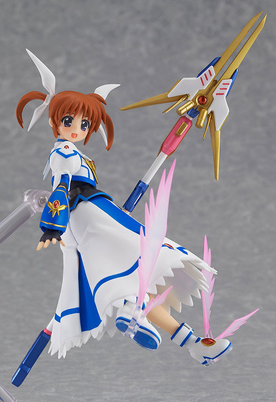 Height approx. 115mm (NON scale) Description Sculpted by Max Factory, Maki Asai From the movie “Magical Girl Lyrical Nanoha The MOVIE 2nd A’s”, the final form of the main character Nanoha Takamachi, Excelion mode, is now available as a figma! -Reproduce every scene from the movie with figma original joint parts that are smooth and precise. -Using soft materials at key points ensures a sufficient range of motion without compromising proportions. -The even more powerful device “Raging Heart Excelion” comes with two types: “Exelion Mode” and “Exelion Mode Strike Frame”. ●The “feathers of light” that are deployed during “Exerion Mode Strike Frame” can be reproduced with replacement parts. -Two expressions are available: a “glaring expression” that gives off a strong sense of determination, and a “smiling expression” with blushing cheeks. -A figma-specific pedestal with a movable support that enables various scenes is included.
