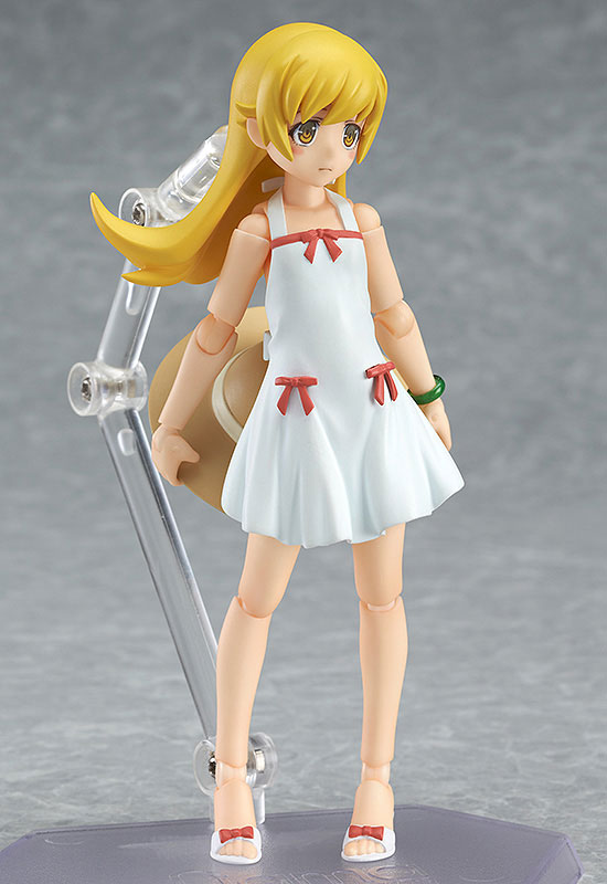 Main body Dedicated pedestal Expression parts (normal face, smile) Donut Half-eaten donut Straw hat Demon sword “Shindo” Description Prototype production Seki (Mac Factory) The proud blonde girl “Shinobu Oshino” that appears in the anime “Monogatari” series is a figma ification. ・Reproduce every scene from the movie with figma original joint parts that are smooth and precise. ・In addition to the “normal expression”, she also comes with a wide “smiling” expression. – Accessories include a donut, a half-eaten donut, and a straw hat used when going out. ・In addition, we also include the magical sword “Kokorowatari” that can only cut off monsters. -A figma-specific pedestal with a movable support is included.